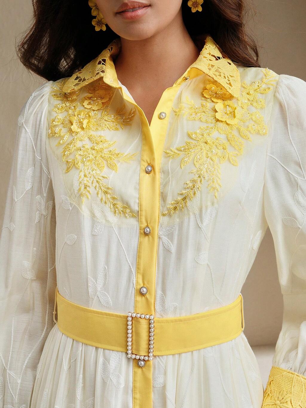 Vestido de mujer con patchwork de encaje en color amarillo limón fresco