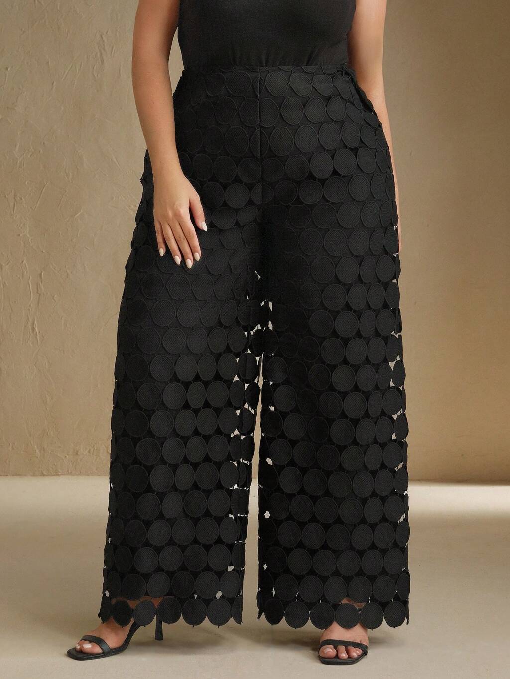 Women's Black Lace Palazzo Pants, New Style Spring/Summer Long Trousers