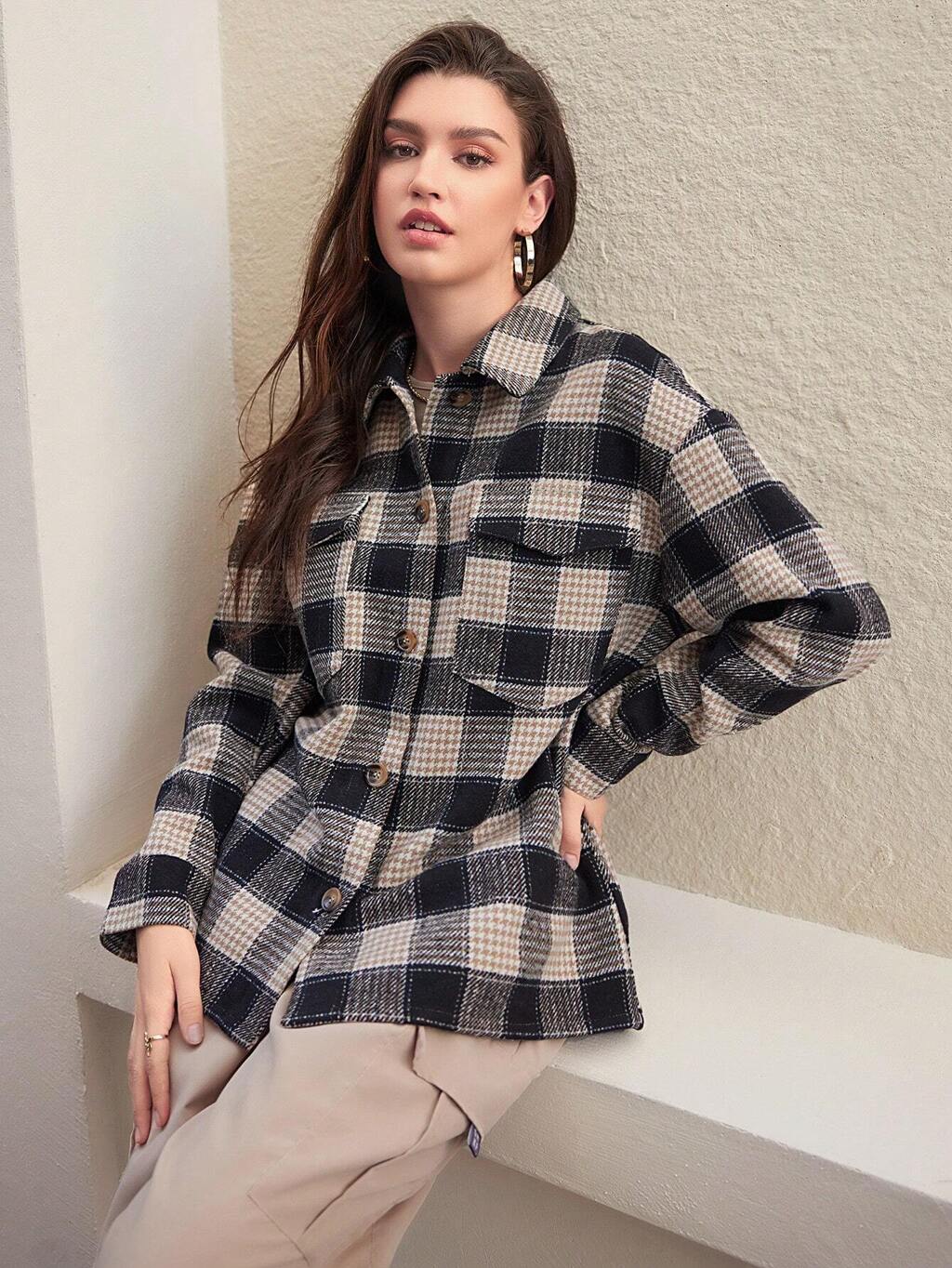 Plaid Shirt Style Flip Pocket Casual Jacket
