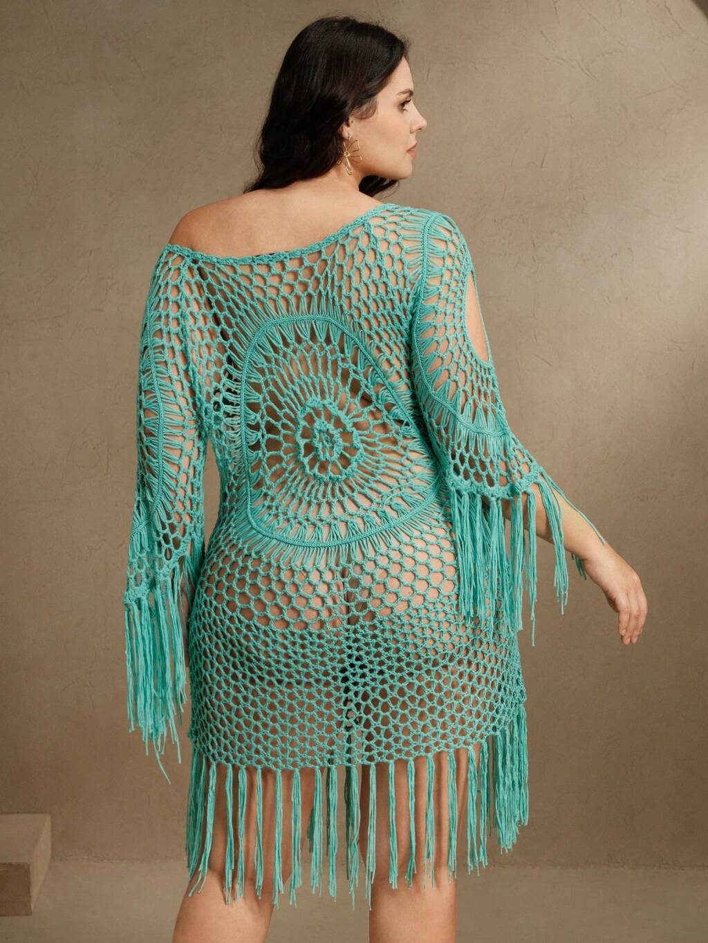 Plus Size Women's Hollow Out Crotchet Bikini Cover Up, Fashionable Beach Holiday, For Summer Vacation