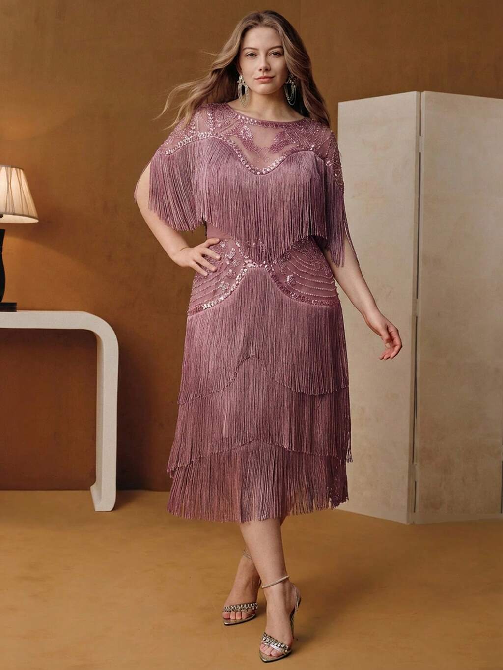 Plus Size Women's Fashionable New Arrival Heavily Beaded Patchwork Tassel Elegant Party Evening Suit