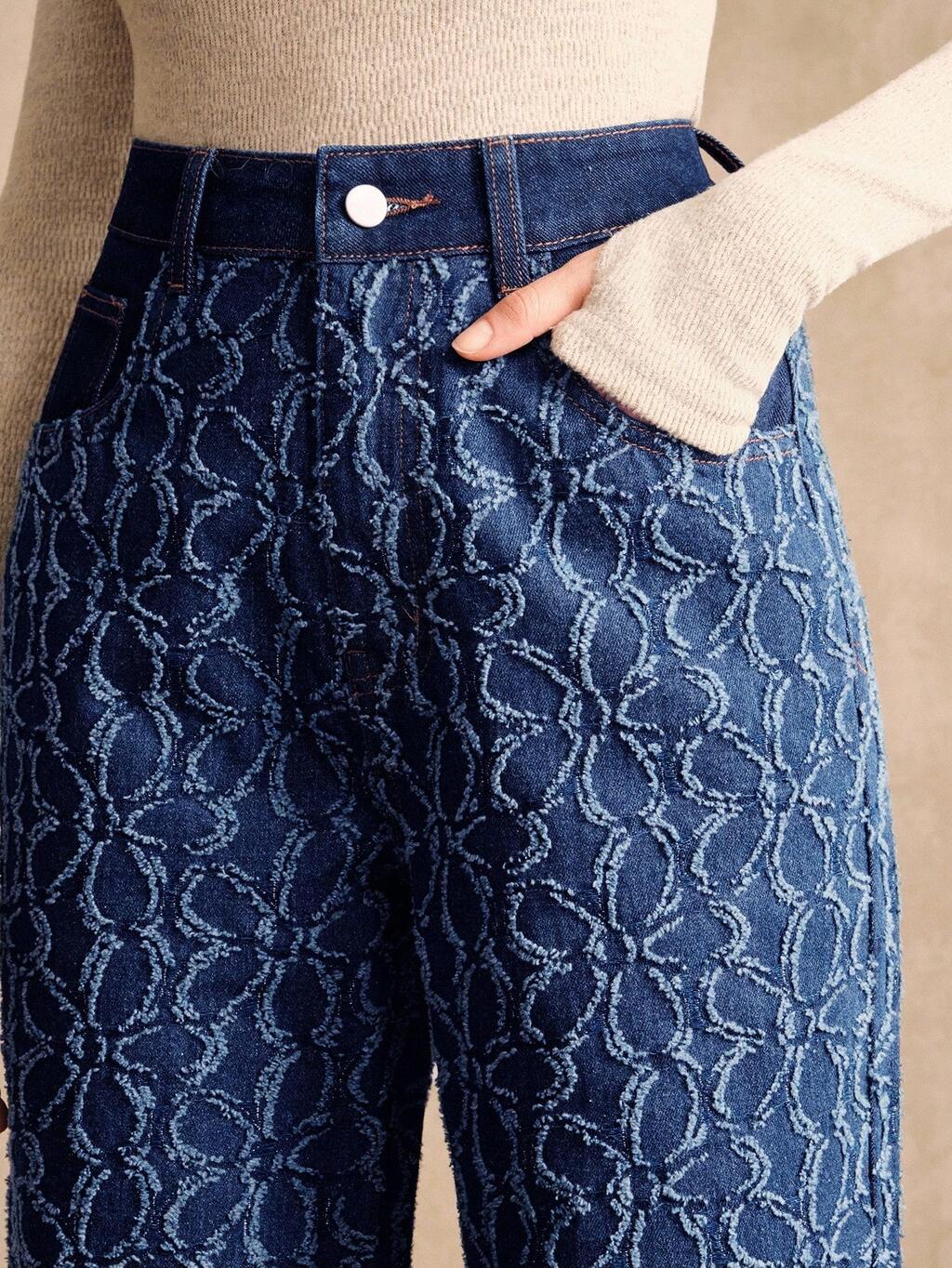 Women's New Jacquard Fabric Blue Denim Straight Leg Pants