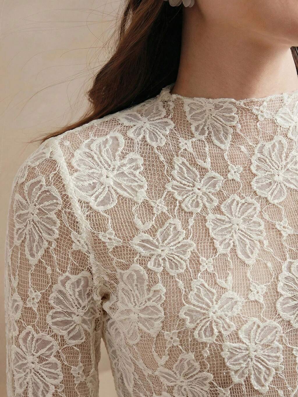女性用エレガントなフロックレーストートルネックインナーシャツ、上質な秋冬春用トップス、新年会、パーティー、結婚式、エレガント、シック、スタイリッシュ、クリスマス、祭り、休日に最適