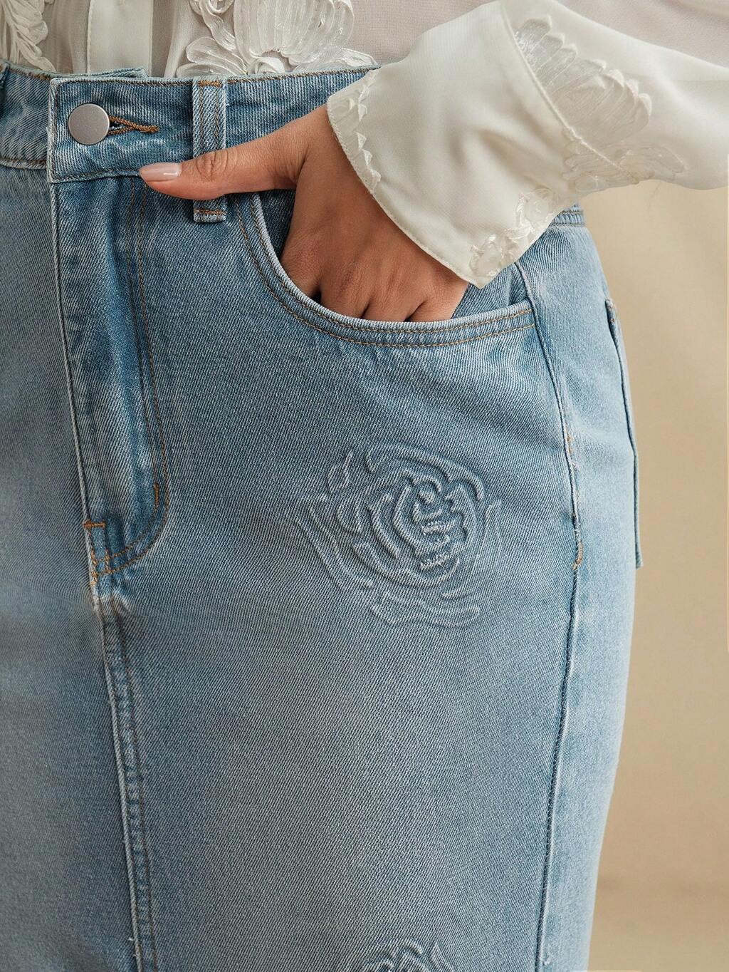Luxury Embossed Blue Fish Tail Maxi Denim Skirt