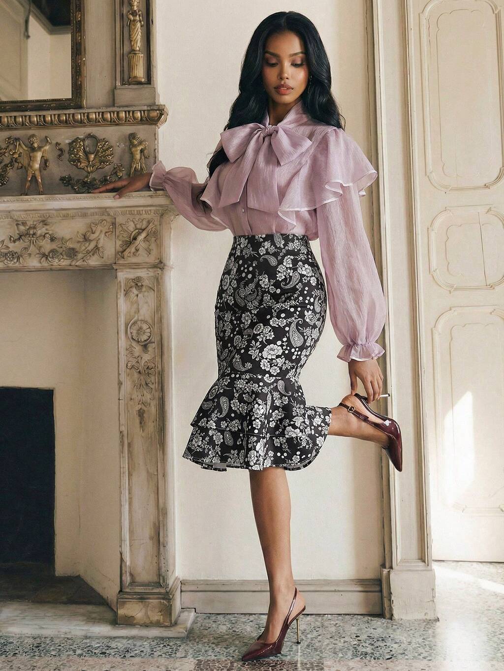 New Elegant Cashew Floral Print Bodycon Mermaid Skirt French Style Clothes Floral Skirts For Women Ruffle Skirt Elegant Skirt
