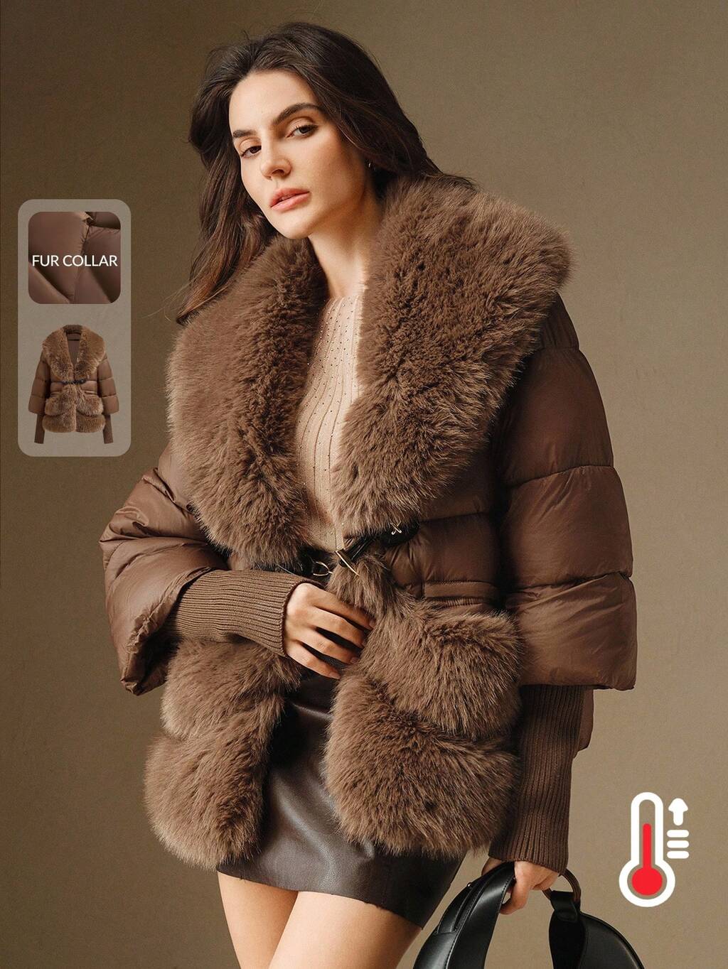 Women's Luxurious Faux Fur Collar Lantern Sleeve Thickened Fashion Jacket