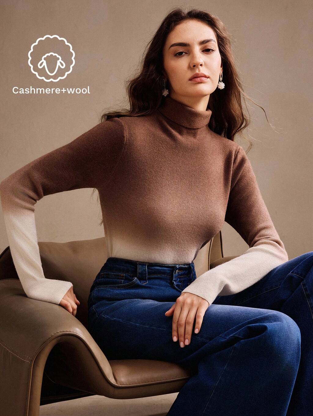 French Elegant Elegant Dignified Ombre Turtleneck Slim Fit Wool Sweater, Autumn/Winter