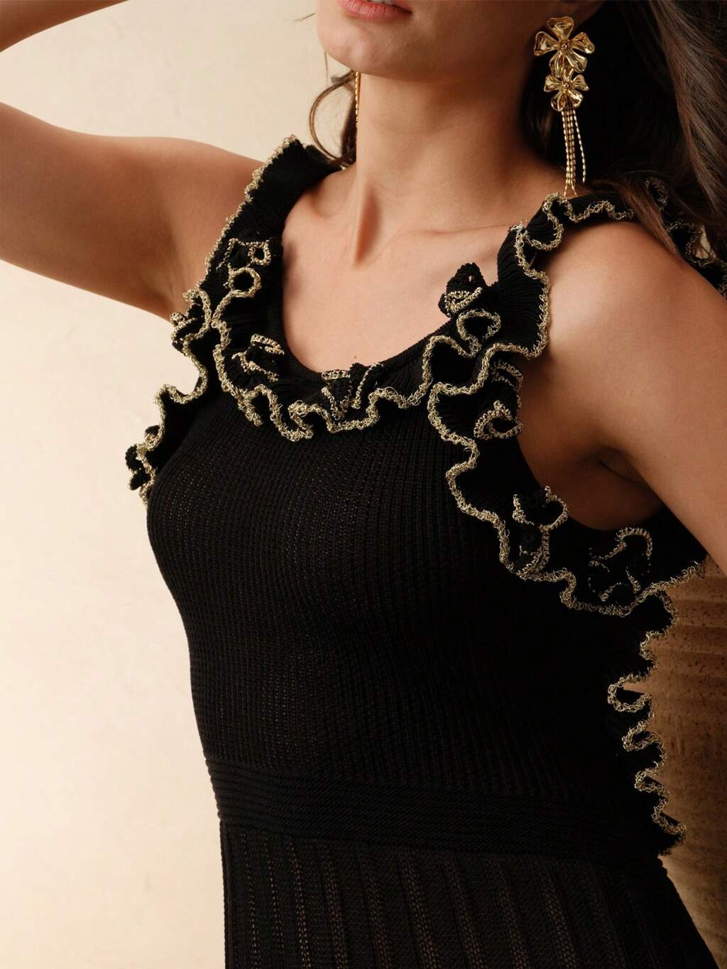 Women's Black Glitter Hollow Romantic Soft Elegant Waist Sweater Dress