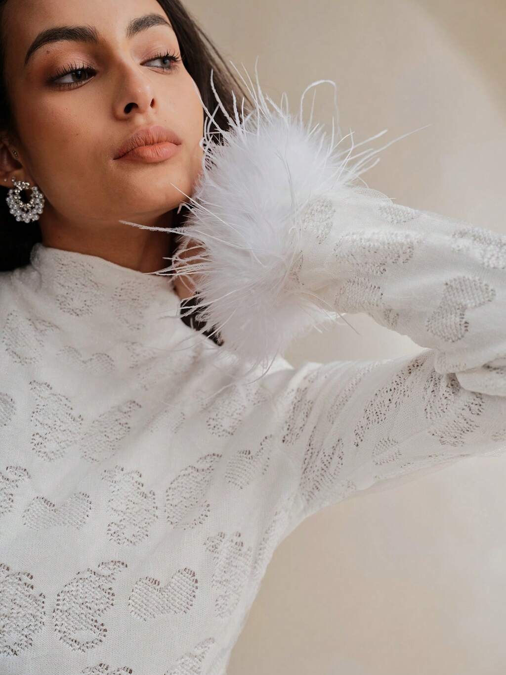 Elegant Christmas Faux Pearl Decor Round Neck Fitted Ribbed Trumpet Sleeve Women Knit Top Knit Pullover Fall Winter Sweater
