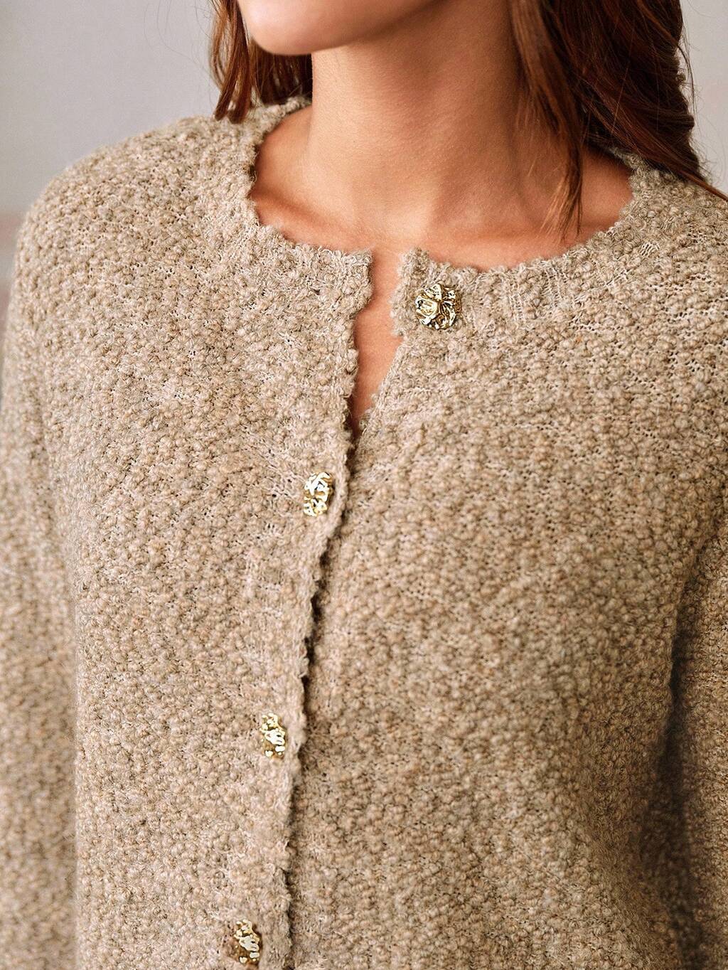 Elegant High-End Embossed Wheat Ear Silver Foil Cardigan