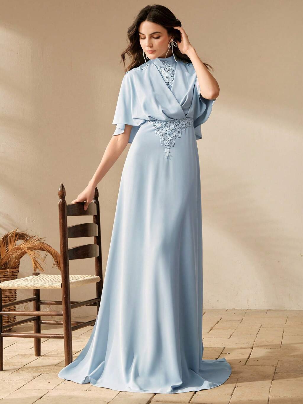 Women's Long Summer Dress With Floral Lace Design, Kaftan Style, Elegant, Waist Cinched, Flared Skirt, Suitable For New Year, Christmas, Valentine's Day