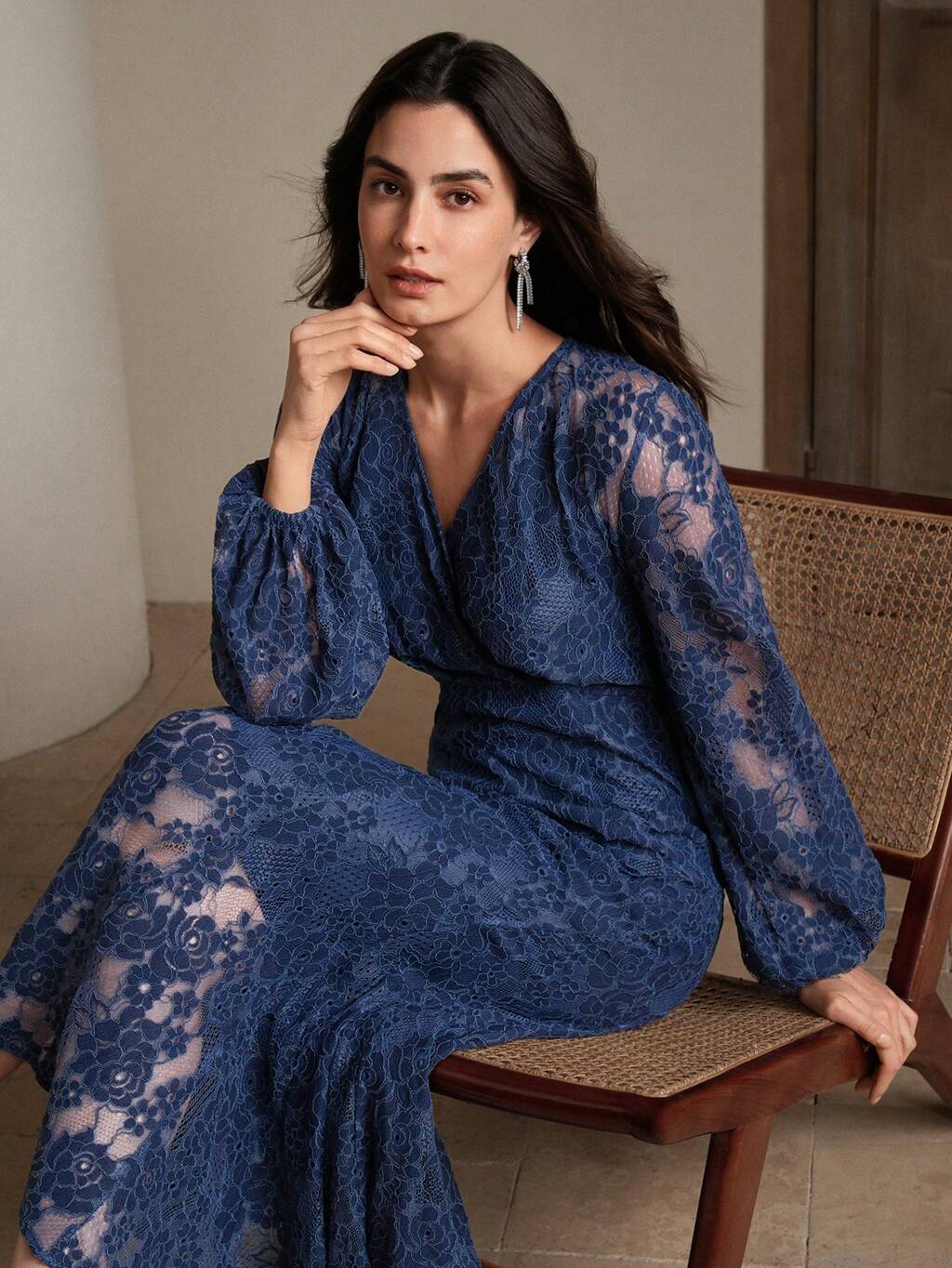 Women's Vintage Lace Long Sleeve Stretch Mid-Length Dress