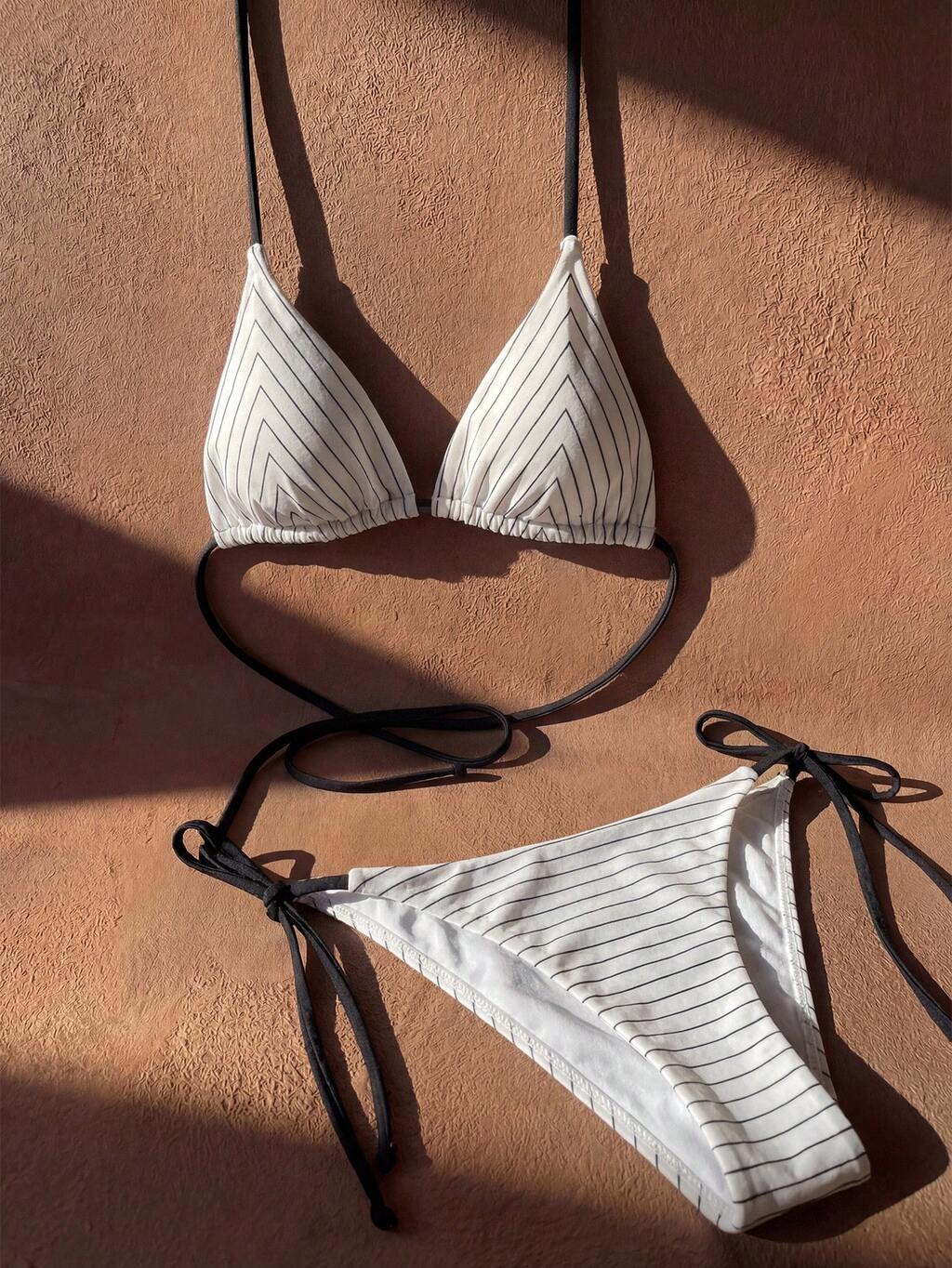 Women's Summer Beach Striped Halter Tie Sexy Bikini And Triangle Briefs Swimsuit Set