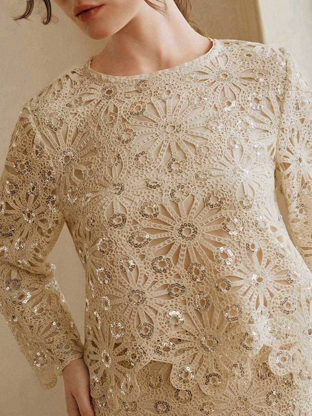 Early Spring New Arrival Unique Fashionable Crochet Sequin Romantic Hollow Out Cover Up + Midi Skirt Set, Plus Size
