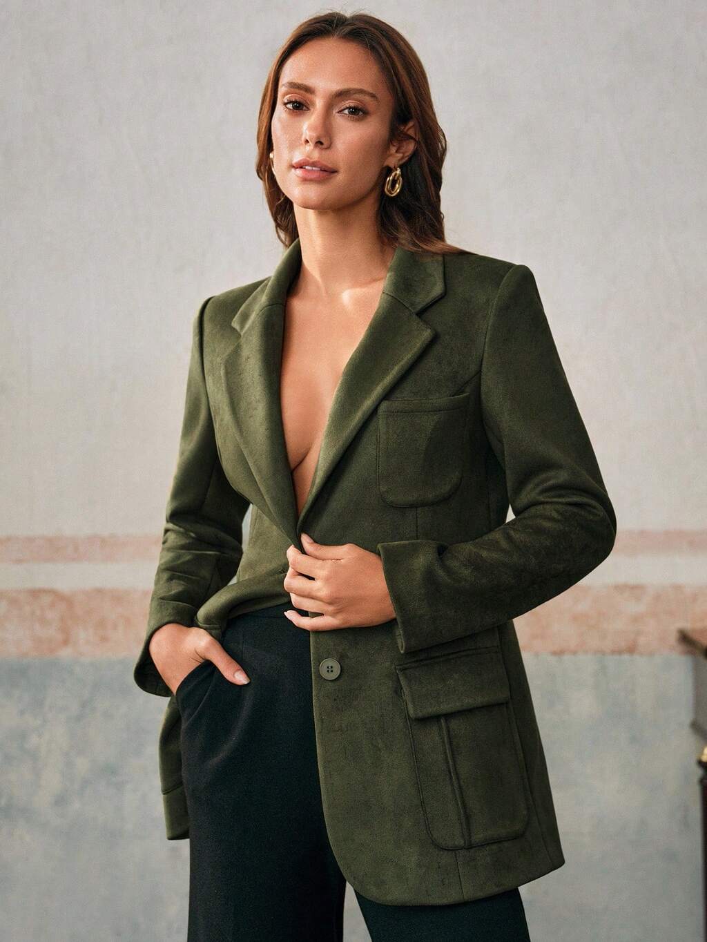 Anewsta Essential Suede Long Sleeve Elegant Multi-Pocket Blazer