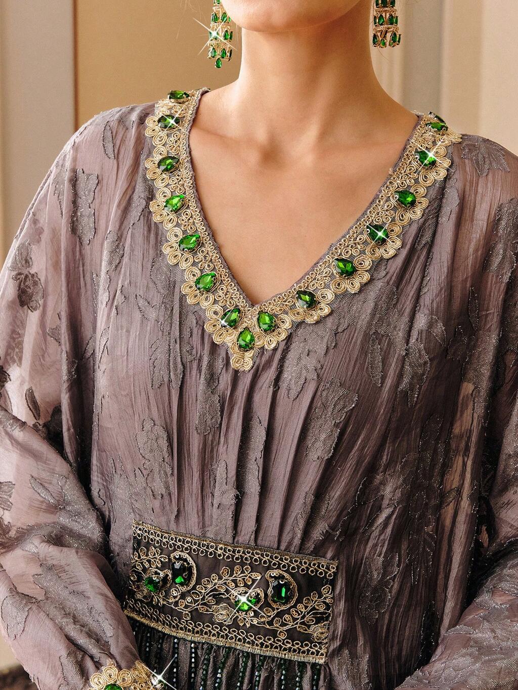 Abito da sera lungo in velluto con ricamo di fiori e strass, elegante per l'autunno, l'inverno, il Capodanno, feste e matrimoni