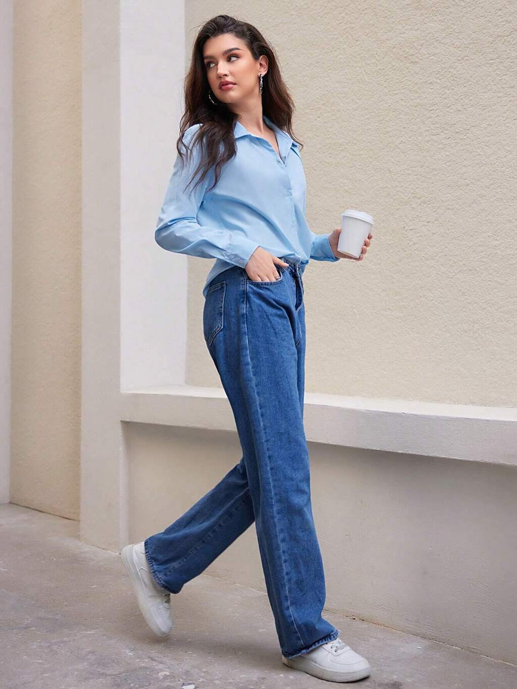 Camicia corta con cintura a D-ring in tessuto tinto unito per donne, stile casual e adatto all\"ufficio