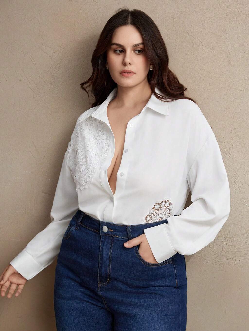 Crochet Patchwork Curved Elegant Oversized Loose Women's Blouse, Suitable For Summer Vacation