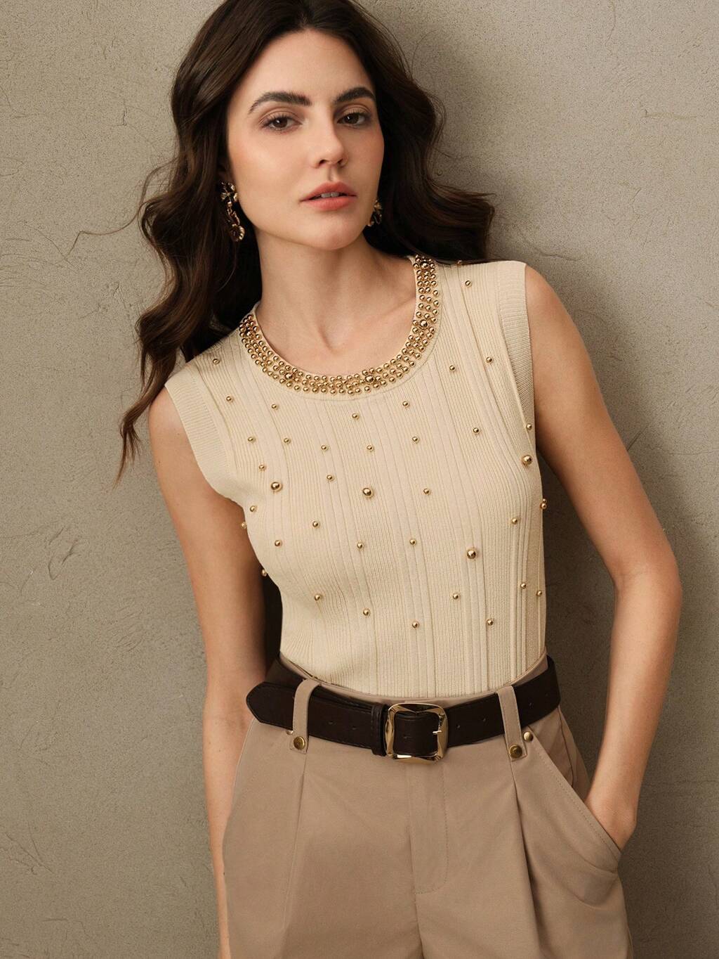 Women Elegant Sleeveless Heavy Beaded Knit Tank Tops, Sweaters, New Years, Valentine's Day, Summer Vacation