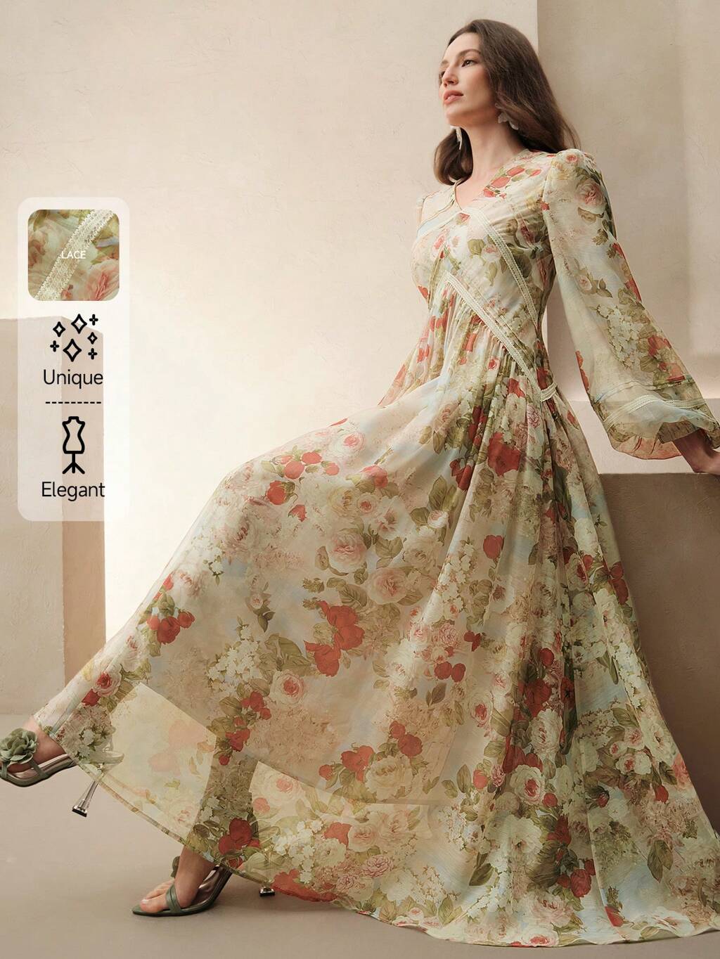 Vestido casual elegante, de uso versátil, con decoración floral larga para mujer