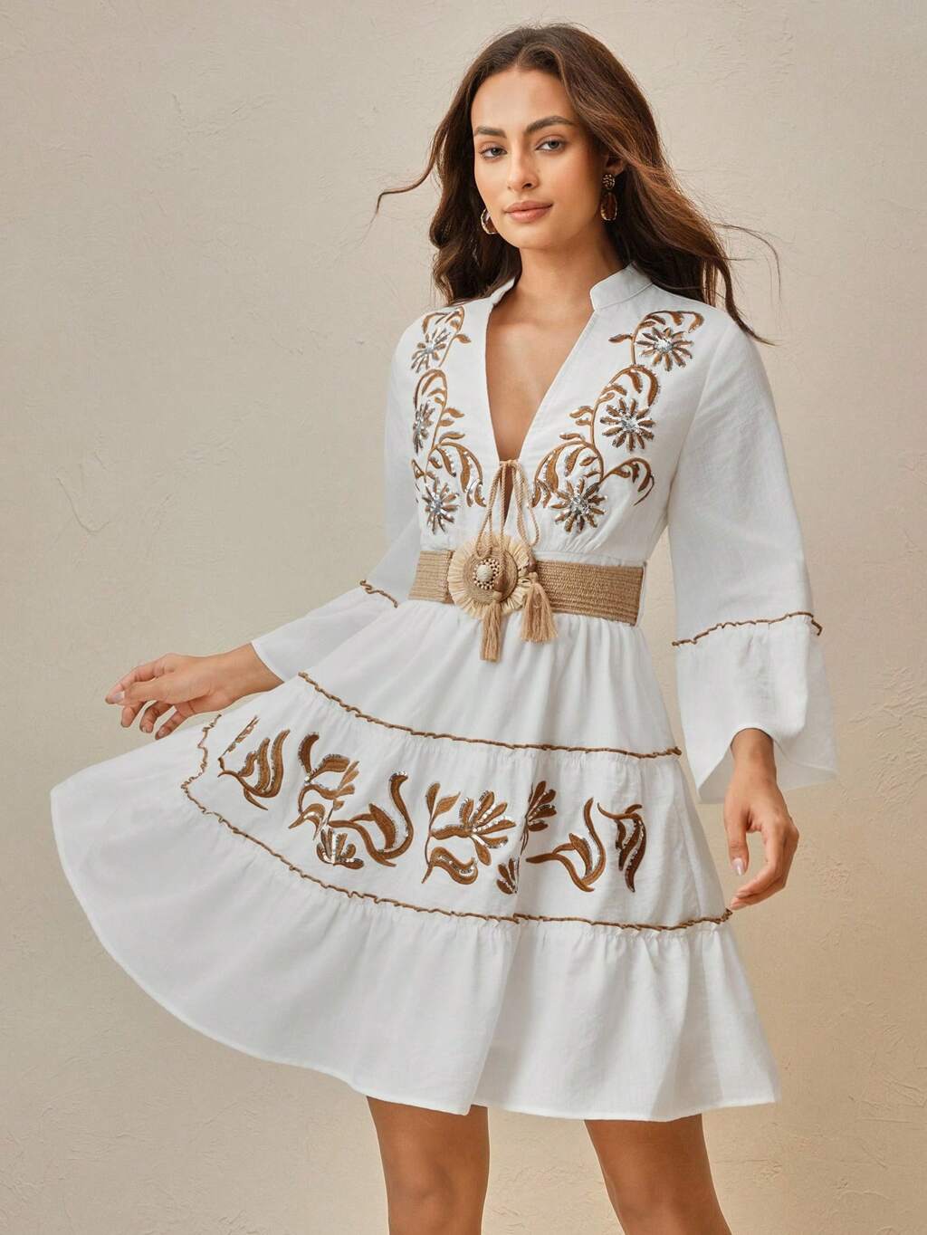Nuevo vestido de verano de mujer con diseño elegante de bordados y encaje, adecuado para vacaciones, festivales, ocasiones elegantes, citas y graduación