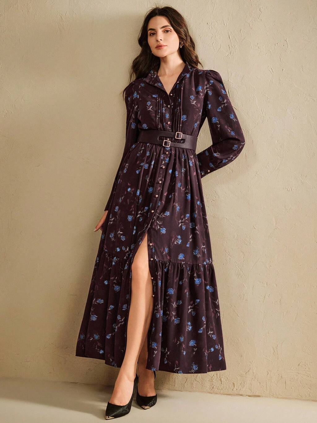 Vestido con estampado floral elegante y moderno con lazo en la cintura para mujeres, nueva llegada de otoño/invierno