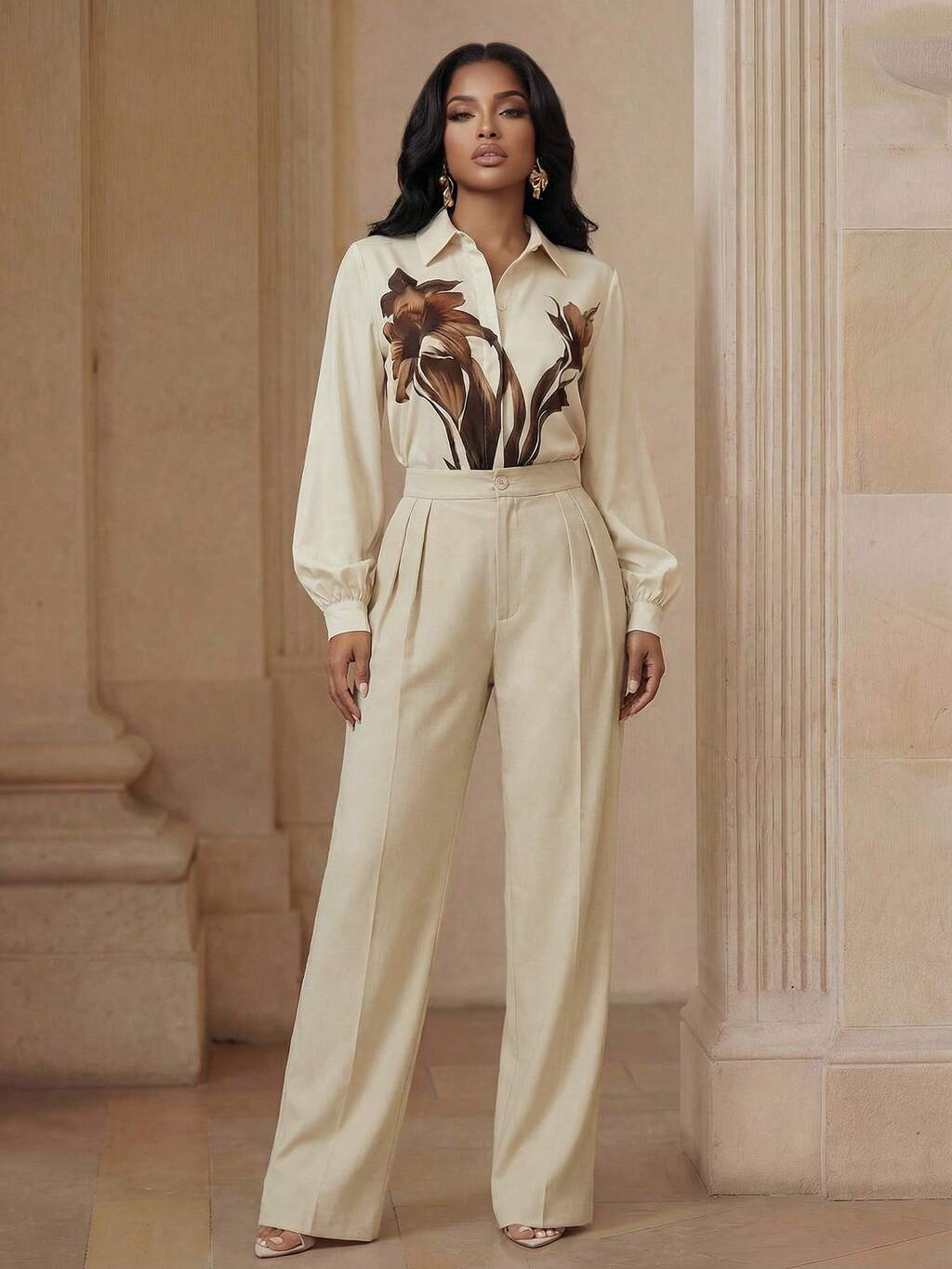 Set de 2 piezas Conjunto elegante de mujer impreso para ir al trabajo