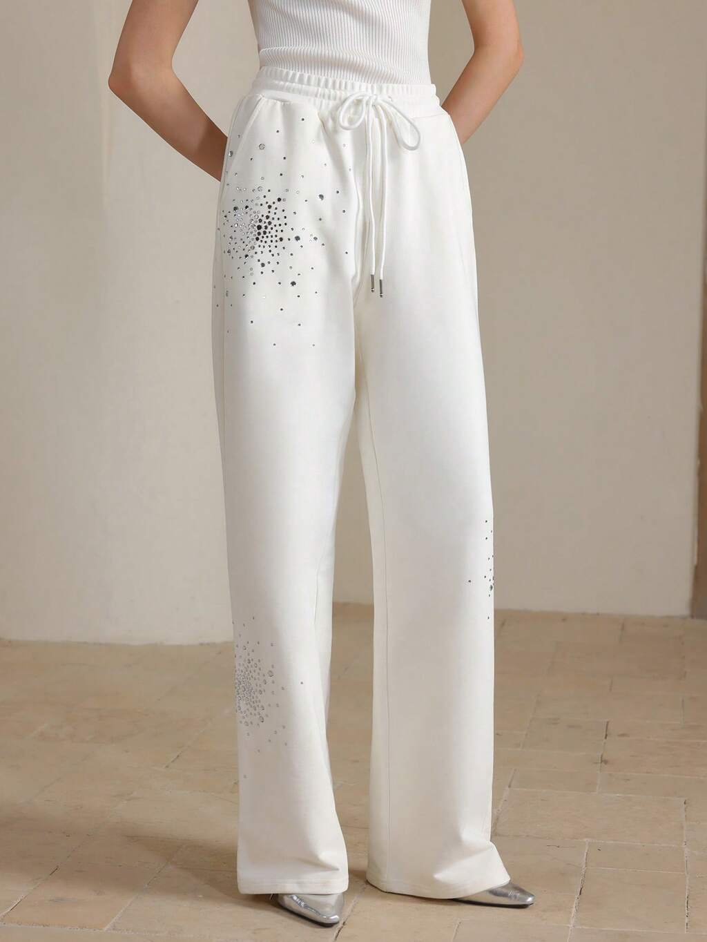 Pantalones casuales elegantes de otoño/invierno para mujer, pantalones de chándal con cintura ceñida y diseño de cristales, adecuados para festivales, invierno, otoño, Navidad