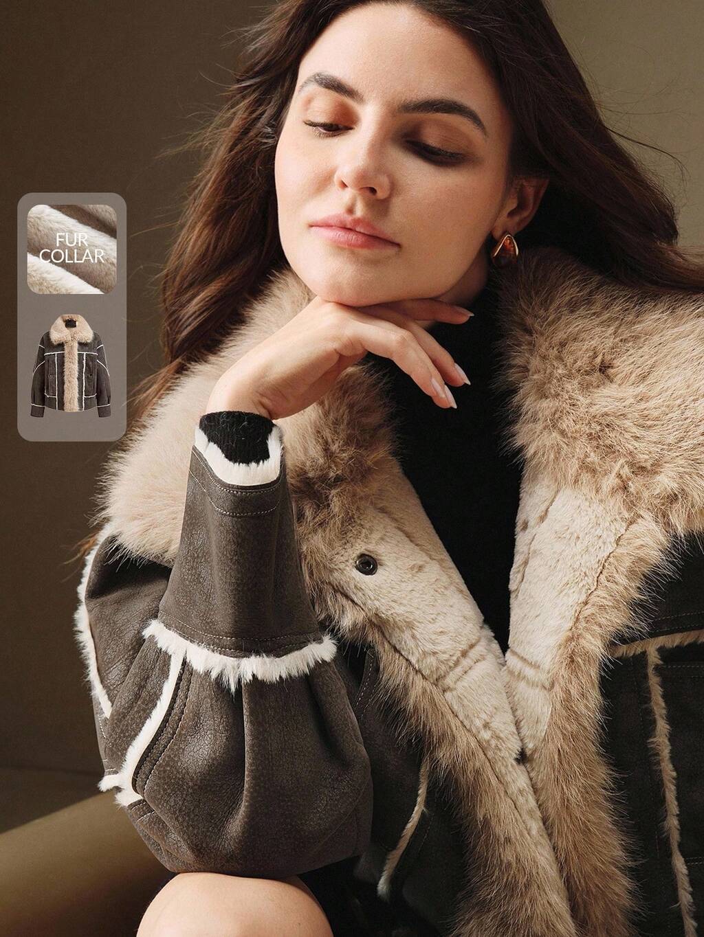 Manteau en fausse fourrure élégant et romantique avec col blanc pour femmes, automne/hiver