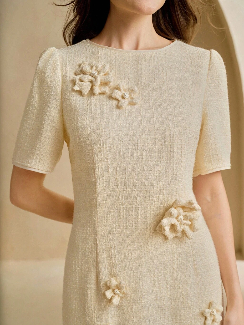 フレンチエレガントな型押し ビーズ付き3Dフラワー Aラインショーツ