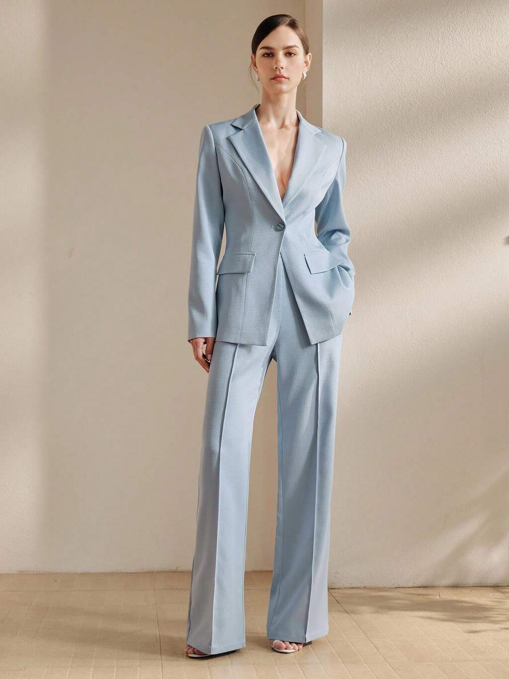 Anewsta ソリッドカラー シングルブレスト 長袖スーツセット、ビジネスカジュアル レトロスタイル レディーススーツセット、ヴィンテージエレガント、品格があり適切、結婚式の来賓やビジネスカジュアルウェアに適しています