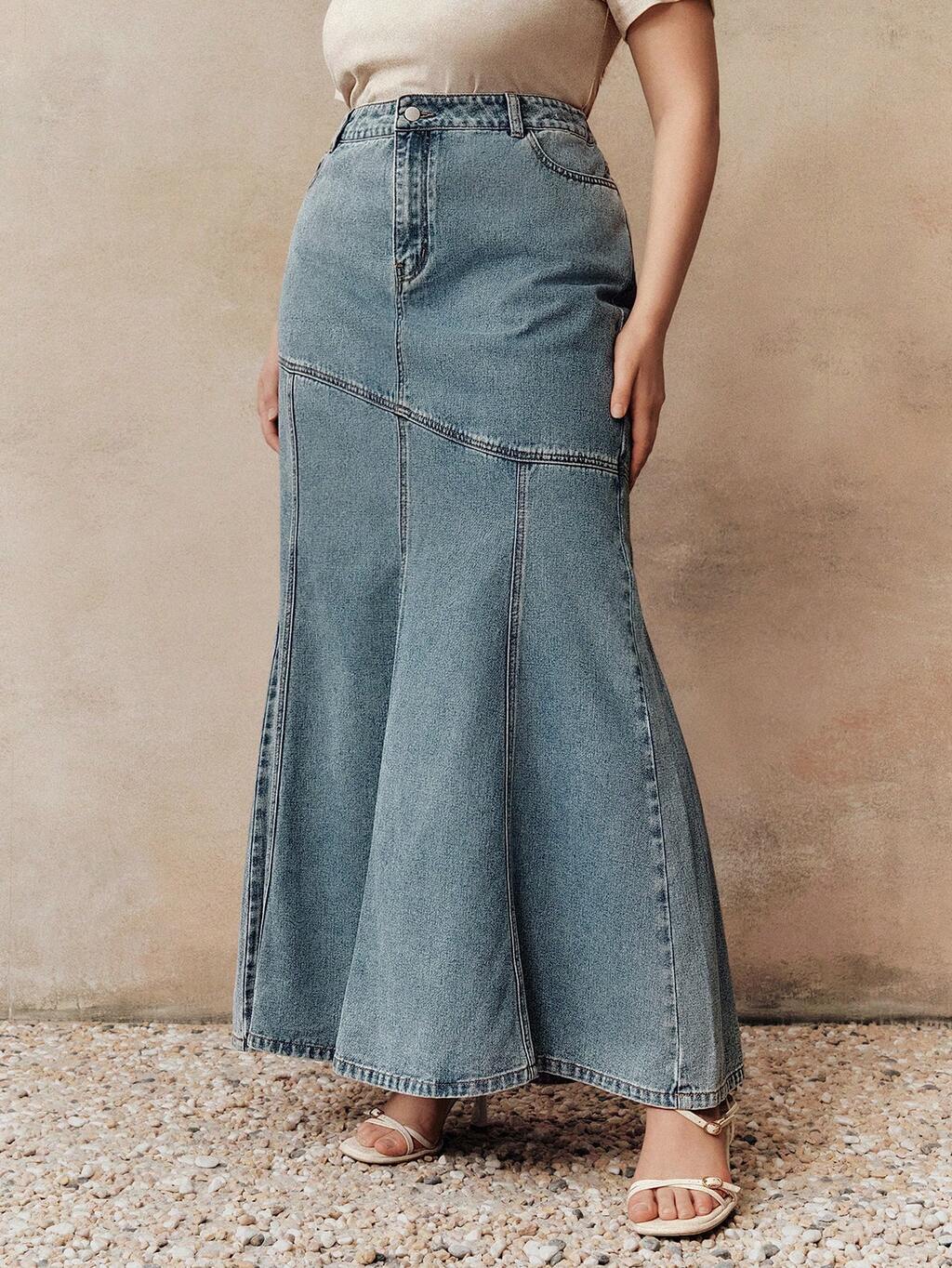 レディース春新作 パッチワーク デニム マーメイドスカート