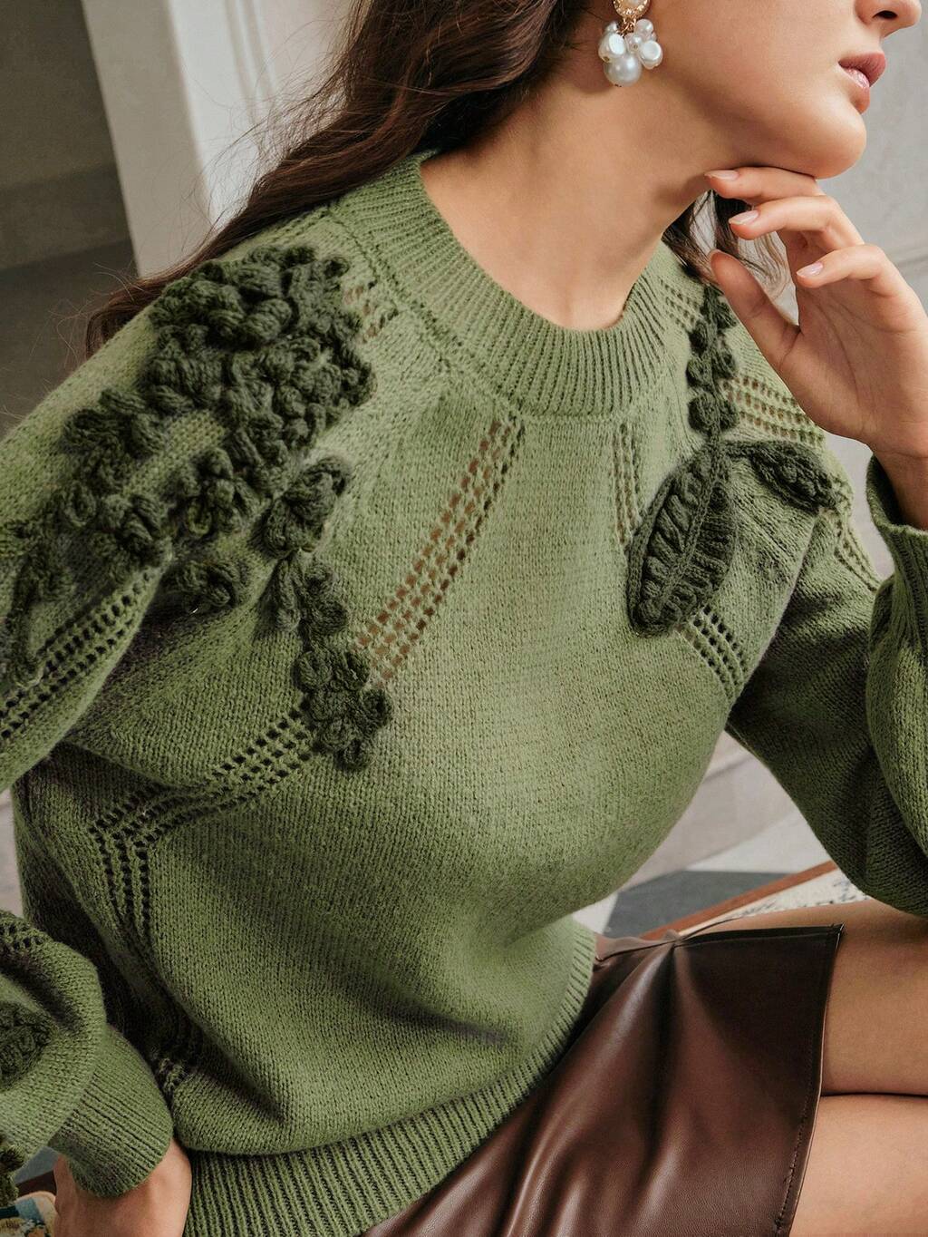 エレガントな3Dフローラル手編みグレープルオーバーセーター、秋、冬、外出、エレガント、フォーマル、パーティー、シック、新年、クリスマス、仕事、卒業、結婚式、快適に着用できます